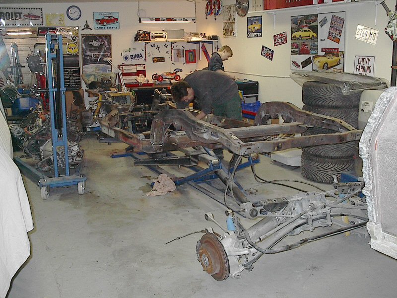 Now, back in the garage again. Now it really begin to look like a car